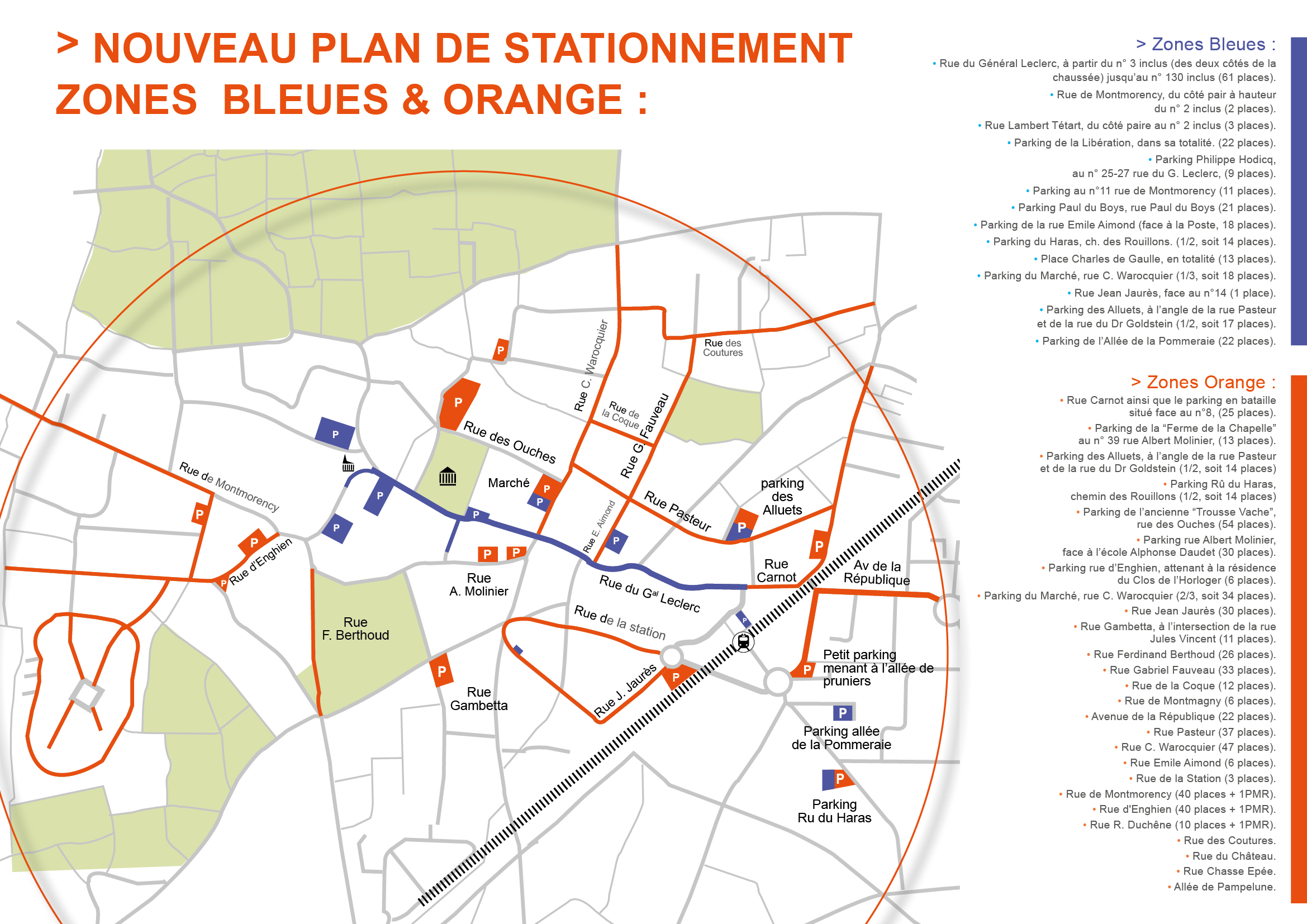 Depuis 2021, des Zones de stationnement Orange sont mises en place, dans plusieurs secteurs de la ville.