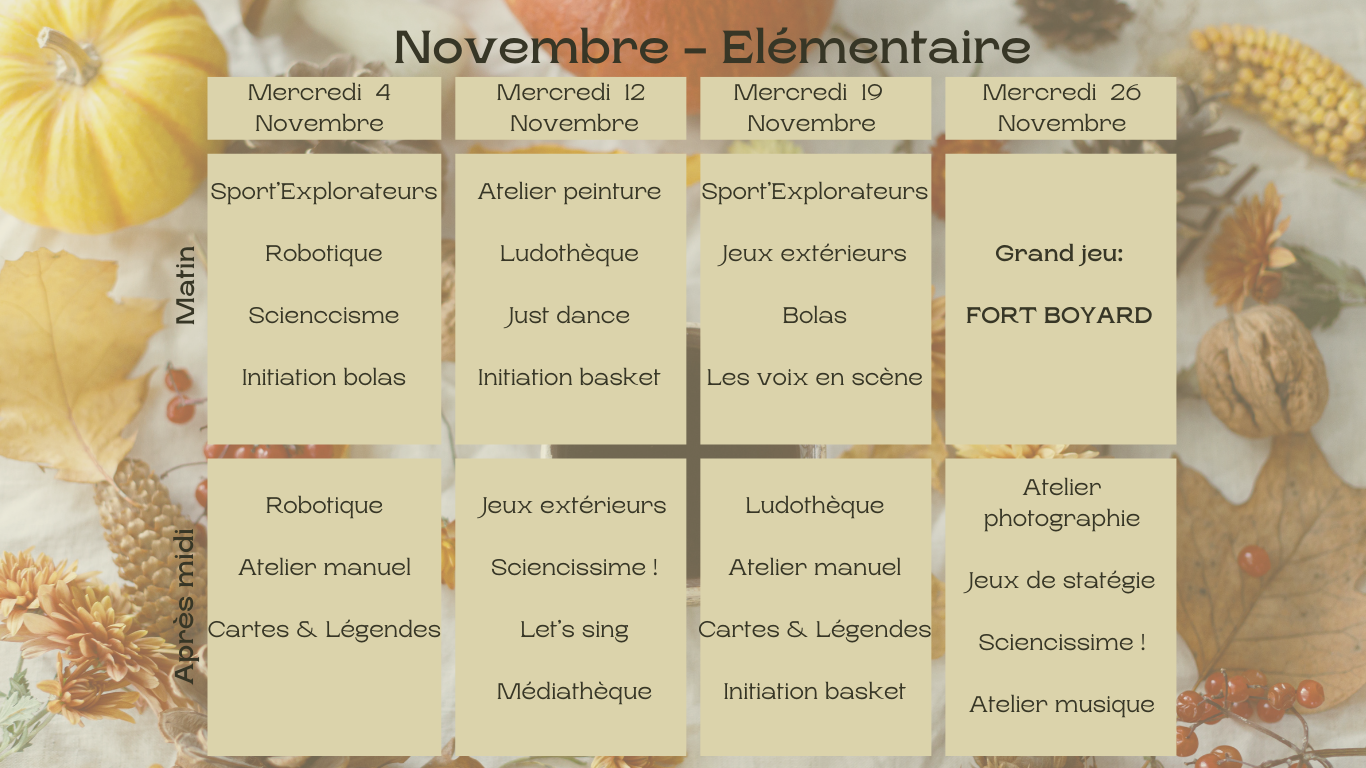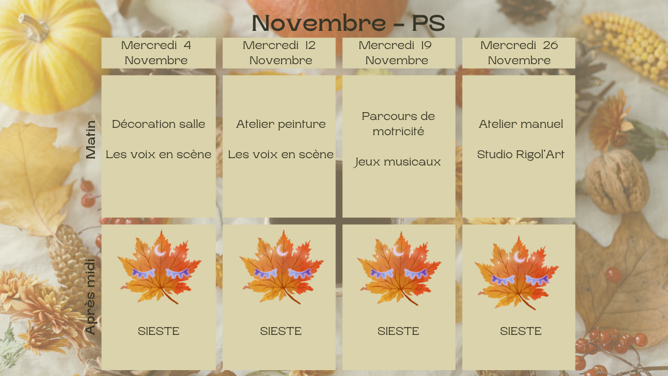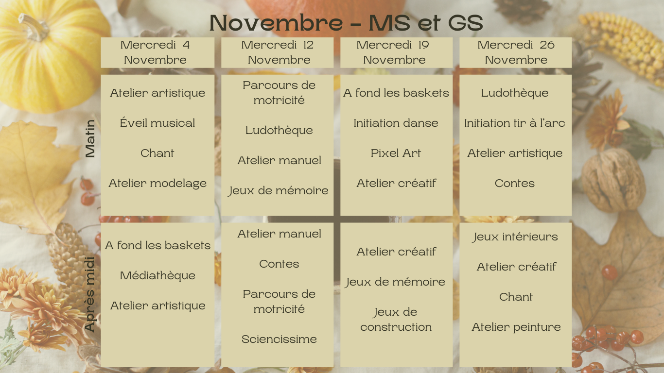 > MOIS DE NOVEMBRE 2025 : Petites Sections - Moyennes & Grandes Sections - Elémentaires