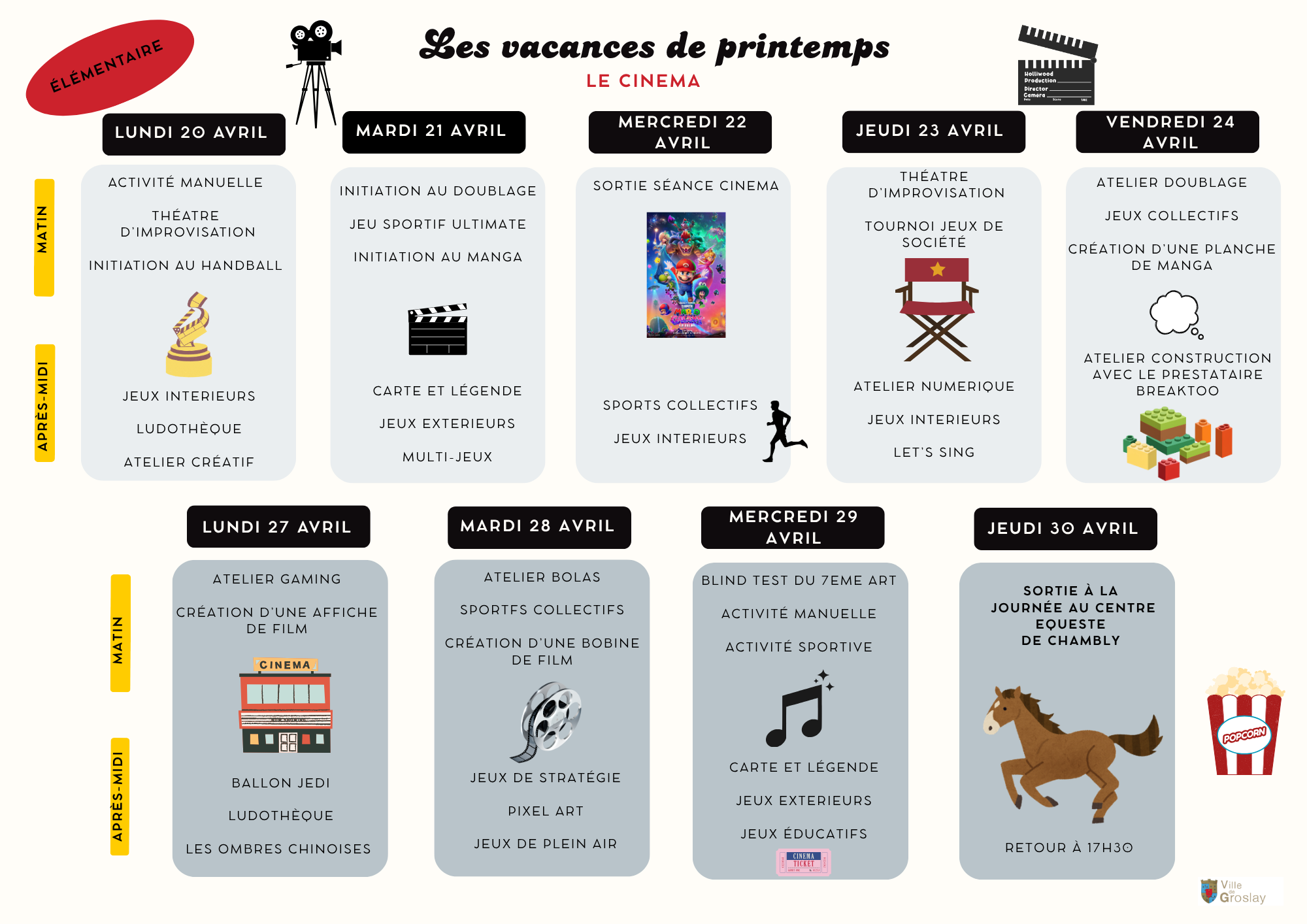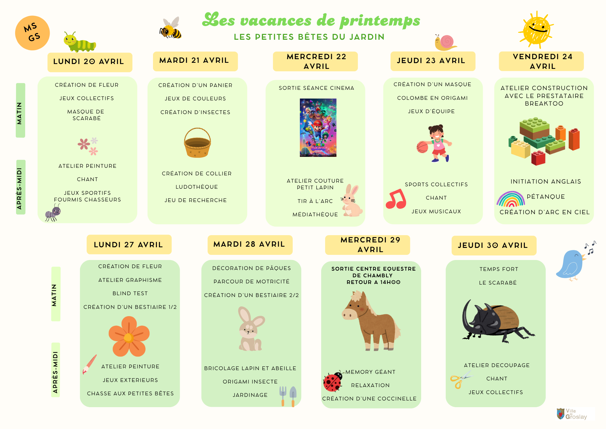 PROGRAMME DES VACANCES DE PRINTEMPS 2026 :